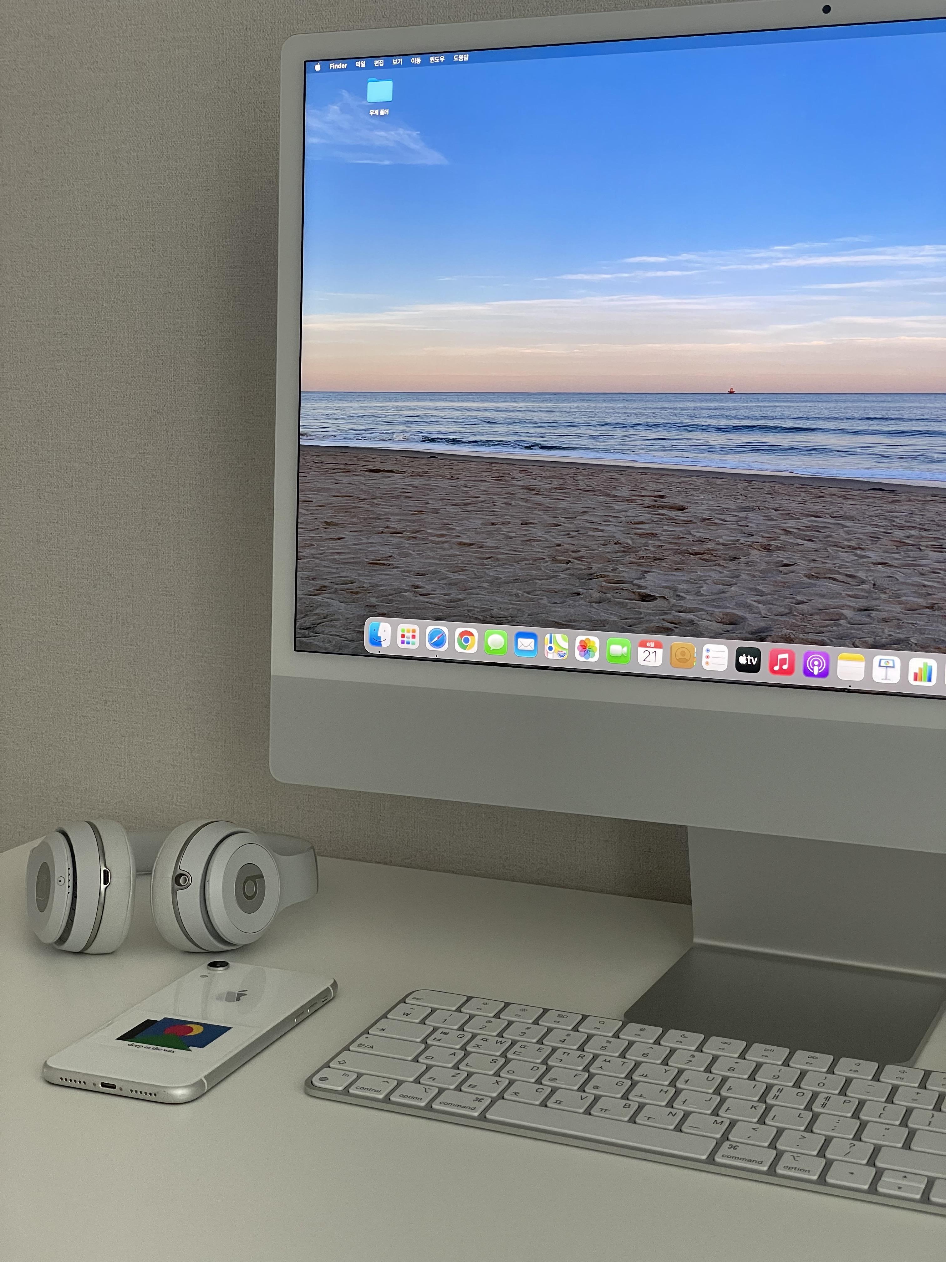 안녕히세요. 오늘은 구매이후 얼른 리뷰를 쓰고 싶었던 제품 아이맥 입니다. 2021년 새롭게 출시한 아이맥은 기존의 제품보다 아주 얇아졌고. 보다 합리적인 가격과 다양한 색상까지 선보였습니다. 출시이전 부터 전세계 사람들에게 주목받게 되었고. 출시일만을 손꼽아 기다리게 했습니다. 저또한 물론이구요. 살수 있을지 없을지는 몰랐어도 얼른 매장에서 만나보고 싶었습니다. 얼마나 얇은지, 디자인은 어떻게 나올지, 새로 추가된 색상들의 퀄리티와 성능은 어떠한지. 궁금한게 많았습니다. 제품이 출시하고 직접 구매하기는 어려움이 있었지만 여자친구의 아버님께서 큰맘먹고 선물로 사주셨기에 감사히 너무 잘사용하고 있는 아이맥 제품. 약2주가 되어가면서 제품에 대한 리뷰를 해보려고합니다. 제품은 개봉하고 사용하기까지 어느정도 시간을 들여 사용해본이후에 리뷰를 하는게 정확하고 솔직하게 정보를 전달할수 있을것 같았습니다. 기다리는 2주가 엄청길게 느껴졌습니다. 너무 매력적이고 만족도가 최상이라 생각하는 아이맥 지금부터 정확하고 깊게 리뷰 해보도록 하겠습니다.