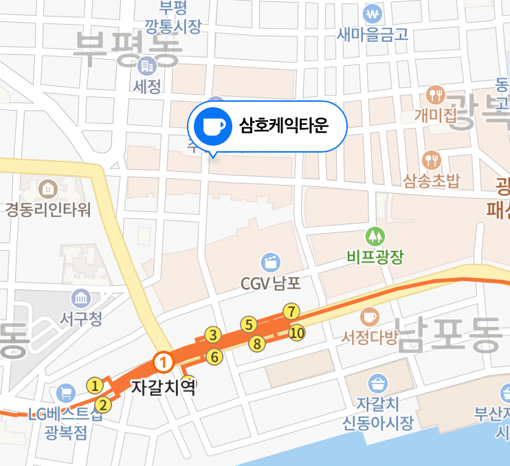 대중교통 : 자갈치역 1호선 3번 출구에서 281m
