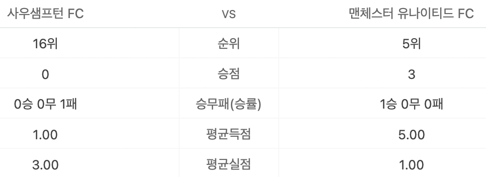 사우샘프턴 vs 맨체스터 유나이티드