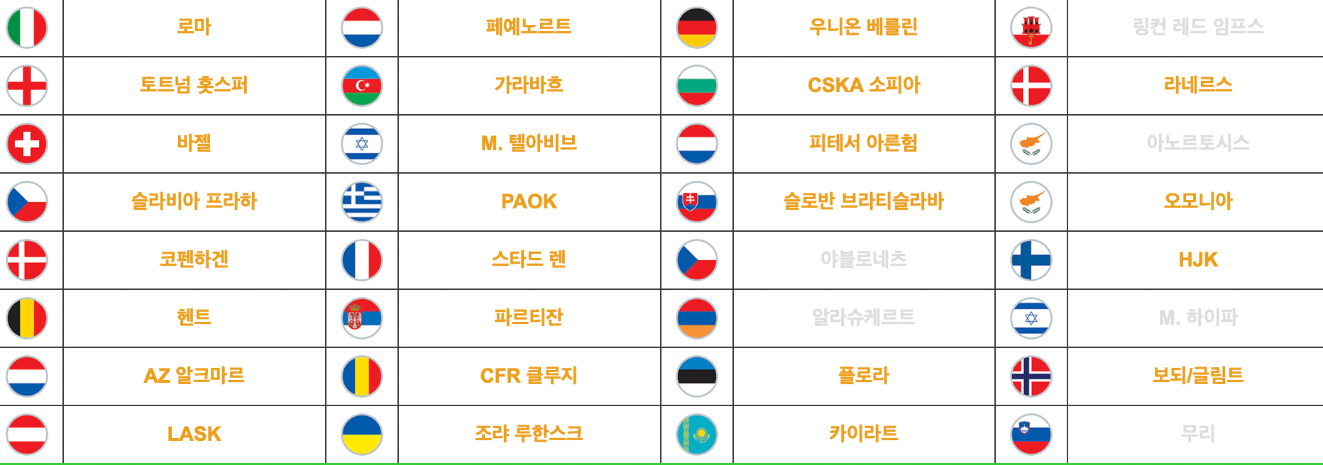 국내 선수 중 유로파 컨퍼런스 본선에 진출한 인물은 트토넘의 손흥민 선수와 린츠의 홍현석 선수이다. 던도크의 한정우와 루빈 카잔의 황인범 선수는 3차 예선을 마지막으로 탈락하게 되었다.