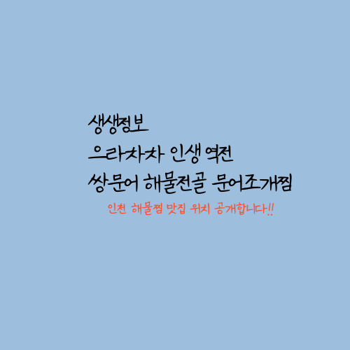 바다를 보면서 다양한 해물은 신선하고 맛있게 맛볼수 있는 이곳은 인천에 위치해 있어서 수도권 주민들은 물론 경기도민들에게 엄청난 사랑을 받고 있다. 수많은 방문자들의 리뷰가 끊임없이 올라오며 각종 방송에 이미 출연한 맛집으로 알려져있다. 생생정보 으라차차 인생역전 쌍문어 가게의 정보는 아래쪽을 통해 확인이 가능하다.