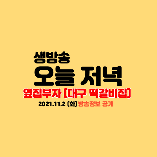 생방송 오늘 저녁 '옆집 부자' 대구 떡갈비집 소개 본문