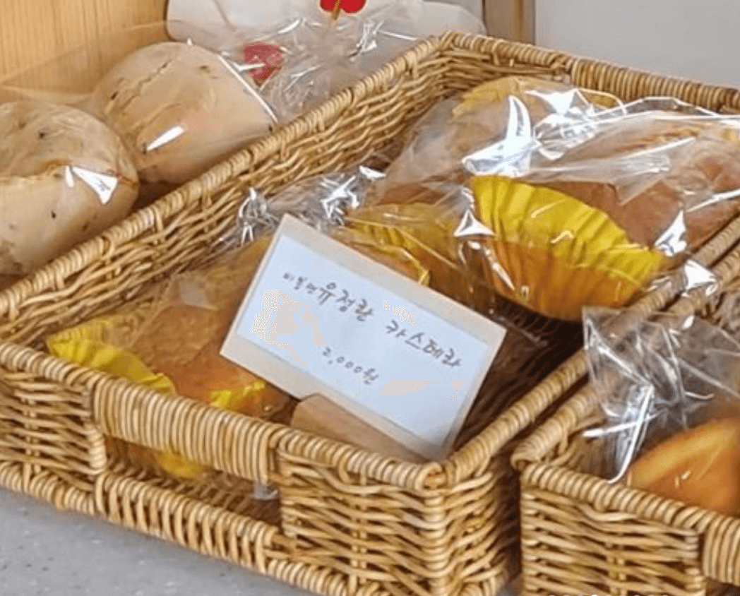 사장님이 만든 빵은 맛있는 향기를 풍기면 손님들의 발길을 붙잡고 있었습니다. 완주에서 생산되는 무공해 우리 밀과 식재료를 이용하여 직접 만드는 빵이라고 합니다. 달걀도 완주에서 생산되는 유정란만 사용하신다고 해요.